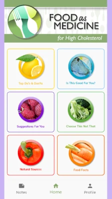 Food as Medicine for High Cholesterol. Inside this colorful app, you will find easy to follow suggestions on how to improve your health through nutrition and the food choices you make every day. This app features comprehensive and actionable nutrition guidelines for how to reduce your risk, prevent and combat high cholesterol. If you rather tackle health issues and risks through proper nutrition and lifestyle changes then this app is for you!